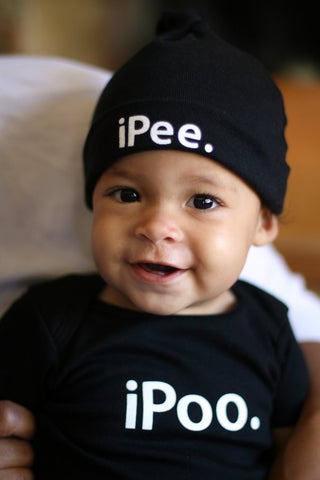 Inspired by my newborn daughter and husband’s obsession with downloading songs onto his mp3 player, the iPoo is our bestseller and brings chuckles all around. Made with American Apparel onesies, iPoos are plush 100 percent cotton bodysuits for the nano in your life.