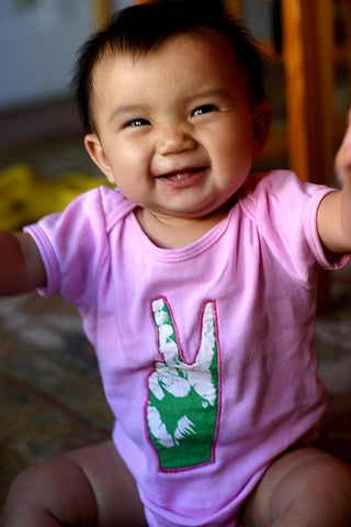 Make sure your little one can say a lot—even before they speak. We individually handcraft and applique the Peace “V” onto an American Apparel babysuit with a soft backing to not irritate skin.